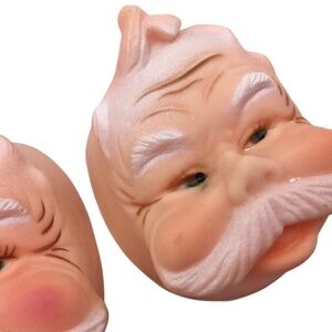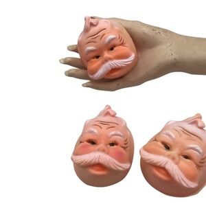 Vintage Santa Claus Heads Set of 3 – Retro Plastic Rubber Faces, Craft Supply