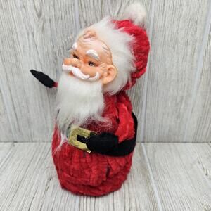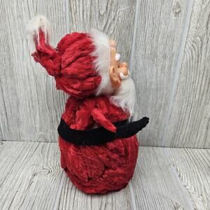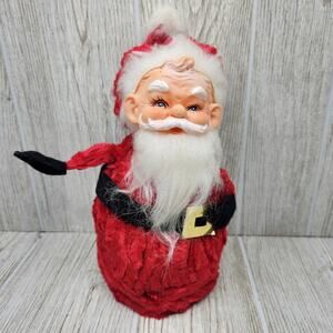 Vintage hand made santa with rubber face. Body is made from a styrofoam core covered in velvety pipe cleaners.
