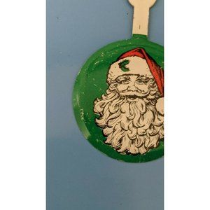 Vintage Santa Claus Tin Litho Pinback Button Metal Tab Xmas Christmas Ornament