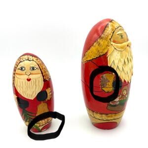 Add a touch of vintage charm to your holiday decor with this delightful set of 5 Santa Claus wooden nesting dolls! Each doll is lovingly hand-painted with intricate details, showcasing the jolly spirit of Santa. This nesting doll set is a perfect collectible or gift for Christmas enthusiasts. They are in good vintage condition, ready to bring joy and festive cheer to your home. Don't miss out on this unique and whimsical treasure!