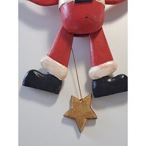 Vintage Santa Claus Wooden Ornament With Moving Limbs & Gold Star Collectible