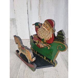 Vintage Santa Claus sleigh card napkin holder horse Xmas figure
