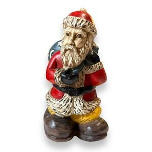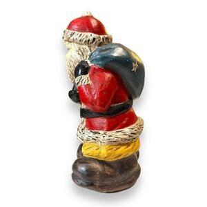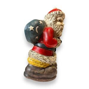 Vintage Santa Clause Figurine Christmas Holiday Chalkware Old World Star Toy Bag