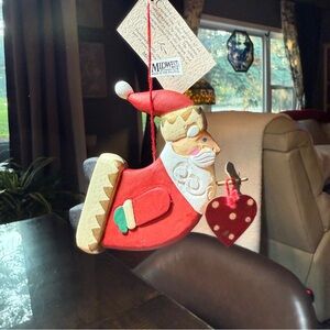 Charming Santa Claus ornament by Midwest. Features vibrant red and gold colors. Perfect for holiday decor.