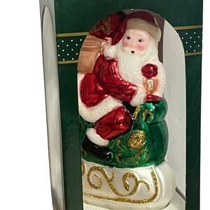 Vintage Santa Clause Sleigh Blown Glass Ornament