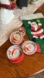 2- Tin Santa coaster set, 6 coasters with cork backing, 3 3/4"