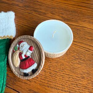 3-Porcelain candle with Santa, 2 1/2" X 1 1/2" Tall.