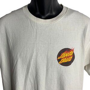 Vintage Santa Cruz Crewneck T Shirt L White Flames Logo Short Sleeves Skateboard