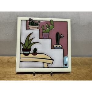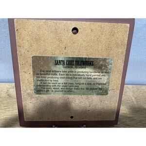 Add a touch of Southwestern art to your wall with this vintage Santa Cruz Tileworks decorative tile. The 6" x 6" square tile features a colorful cactus design, hand-painted with terracotta and enamel on a glazed finish. The tile is suitable for display on your wall and is perfect for collectors of decorative items.