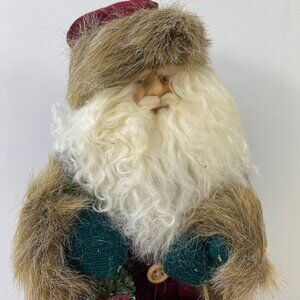 Vintage Santa Decoration Red Coat Hat Wreath Birdhouse Gifts Faux Fur Details