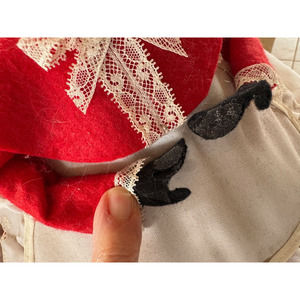 Both Santa and Mrs Claus are in very good condition. Mrs Claus may have been holding something in her hands at one time. There is a bit of glue residue on her mittens. See all up close photos.