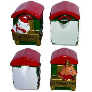 2 Piece Nesting Creamer Reindeer Train Car with a Snowman Sugar Bowl Both with Lids