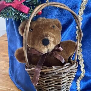 vintage santa topper,blue robe santa,santa tree topper,snowman santa decor,holiday wreath santa,teddy bear santa,christmas basket decor,24 inch santa figure,vtg holiday decor,nostalgic santa