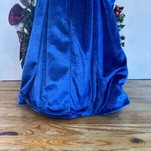 Whimsical and festive, this 24″ vintage Santa tree topper features a blue robe, snowman figure, wreath, teddy bear, and basket of gifts. Crafted with mixed materials and expressive detailing, this Father Christmas brings warmth and storytelling to your holiday display.