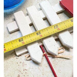 Vintage Santa and Christmas Tree White Picket Wooden Fence Holiday Decor