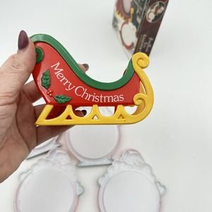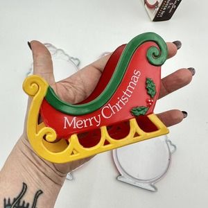 Vintage Santa and sleigh kitschy plastic holiday coaster set