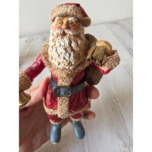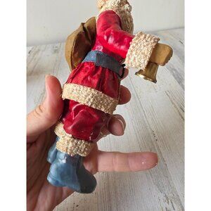 Vintage Santa paper mache bag Bell figurine Xmas decor