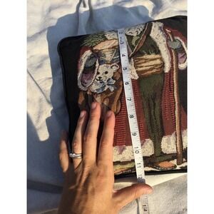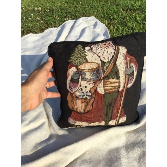 Vintage Santa pillow bear rectangle tapestry Christmas home decor accent sz 12”