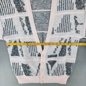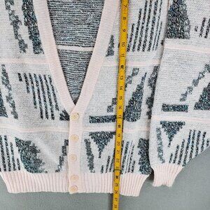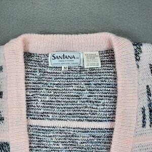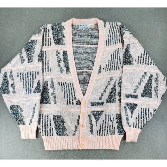 Vintage Santana Pin Geometric Pattern Mens M Long Sleeve Button Cardigan Fuzzy