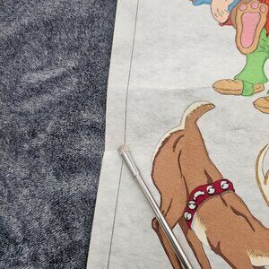 Vintage Santa's Elves Cut out Painted Fabric 16x20 made & Printed USA Christmas