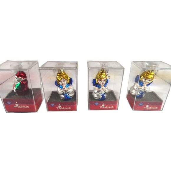Vintage Santas Workbench Blown Glass Ornaments Set of 4 Santa/Angel Figurines