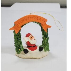 Vintage Santa's World Classic Ornament Merry Christmas Santa. Made of Clay, this ornament features Santa Playing in the Snow under a Merry Christmas Banner. Our Inv# ORN 056