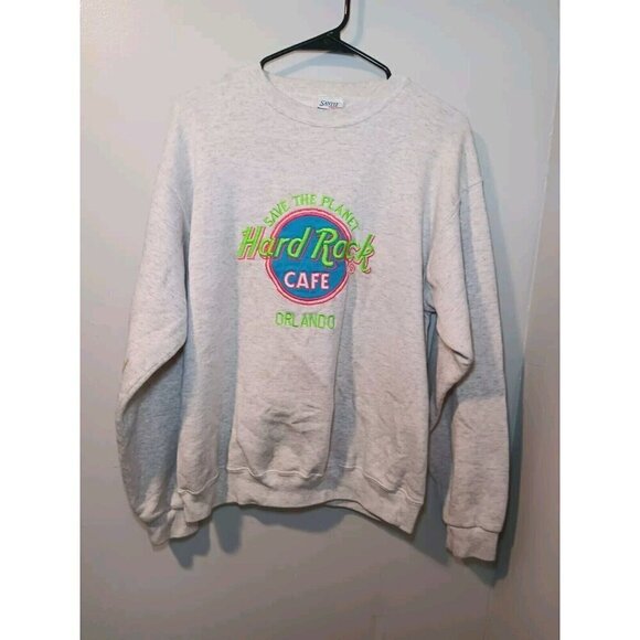 Vintage Santee Hard Rock Cafe Orlando Neon 90s Embroidered Sweatshirt Size Med