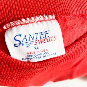 This vintage Santee sweatshirt is a must-have for any collector. The red pullover sweatshirt features a unique Teddy Bear print from Indiana that is sure to catch the eye of any passerby.