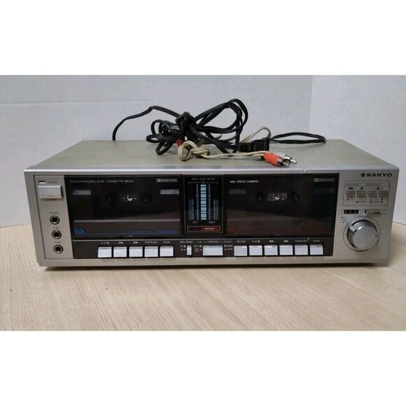 Vintage Sanyo RD W55 Double Stereo Cassette Deck Tape Player Powers On-Parts
