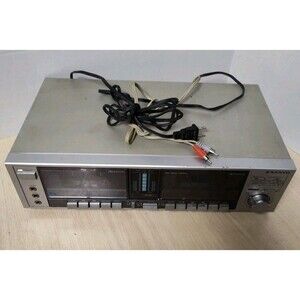 The Vintage Sanyo RD W55 Double Stereo Cassette Deck Tape Player is a classic piece of audio equipment from Taiwan. As a single unit, this cassette deck features the model RD-W55 and is branded by Sanyo. With its double stereo capabilities, this player allows you to enjoy music from two cassette tapes simultaneously or mix and match your favorite tracks. Although it powers on, this vintage piece is being sold for its parts, making it a unique find for collectors and enthusiasts of vintage audio equipment.