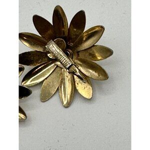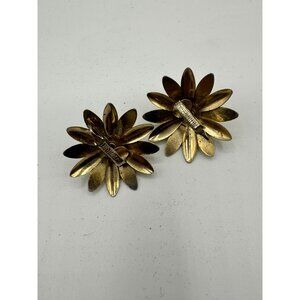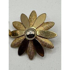 Vintage Sara Cooventry Gold-Tone Daisy Clip-On Earrings Textured Polished Petals