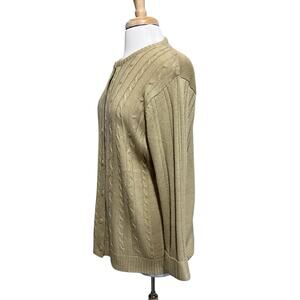 Vintage Sara Morgan Cable Knit Button Down Cardigan Sweater Women's L Tan Beige