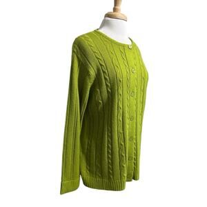 Vintage Sara Morgan Cable Knit Button Down Cardigan Sweater Women's M Green