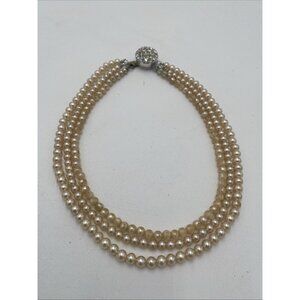 Vintage Sarah Coventry 3 Strand Pearl Necklace Rhinestone MCM 15" long