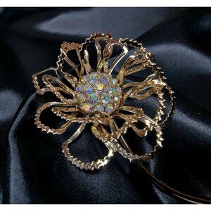 Aurora Borealis Magic: At its heart lies a dazzling cluster of Aurora Borealis rhinestones, shimmering in a palette of opalescent hues—lavender, aqua, and champagne—each catching light like stardust. ✨