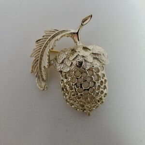 Vintage Sarah Coventry Acorn Shape Brooch, Gold Tone Tree Seed, Retro Estate