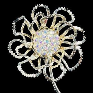 Vintage Sarah Coventry Allusions Gold Tone And AB Rhinestone Flower Brooch (4624