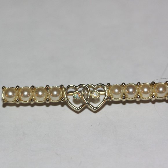 Vintage Sarah Coventry Bar Brooch Pin Heart Faux Pearls Rhinestone #25