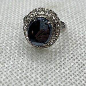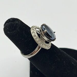 Vintage Sarah Coventry Black Stone And Silver Tone Halo Ring 1964 Size 6-7