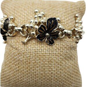 Vintage Sarah Coventry Bracelet Golden Grape Clusters and Black Flowers 7in.
