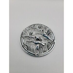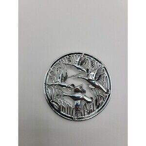 Vintage Sarah Coventry Brooch Pin Round Ducks Birds Fowl Silver Tone