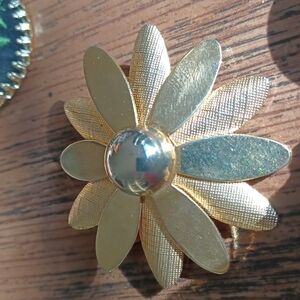 Vintage Sarah Coventry Brooch, gold-tone flower, approx 2"