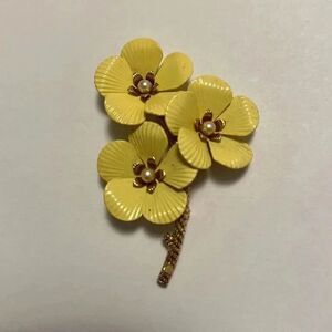 Vintage Sarah Coventry Brooch Enamel Yellow Flower Metal Blossoms. Please see photos for measurements.