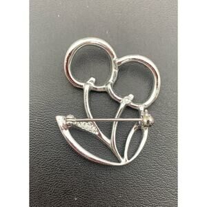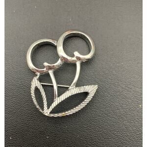 Vintage Sarah Coventry Cherry Cherries Brooch Signed Pin Silver Tone Retro Shiny