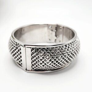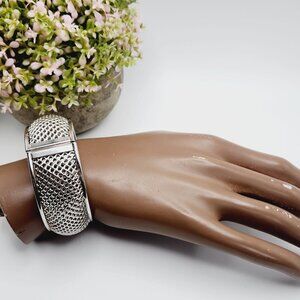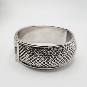 Vintage Sarah Coventry Cosmopolitan Mesh Silver Tone Hinged Bangle Bracelet