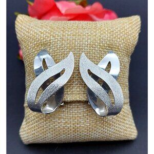 Stunning vintage Sarah Coventry demi parure set. Features a 3-inch brooch and 1.5-inch clip earrings, beautifully crafted with textured and smooth silver tone swirls. A truly unique and stylish set for any jewellery collection.