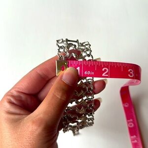 This elegant silver tone vintage signed Sarah Coventry chain bracelet adds a touch of sophistication to any outfit. Perfect for both casual and formal occasions.