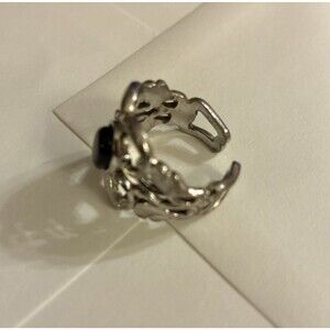 The Vintage Sarah Coventry Filigree Silvertone Ring with a Black Onyx Gemstone is a timeless piece of jewelry that exudes elegance and charm. The adjustable ring size makes it versatile for anyone to wear, while the intricate filigree design adds a touch of vintage flair. The black onyx gemstone adds a sophisticated touch to the overall look, making it a perfect accessory for any outfit or occasion. Crafted by the renowned brand Sarah Coventry, this ring is sure to become a cherished piece for any jewelry lover.