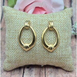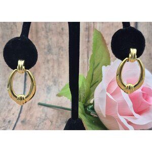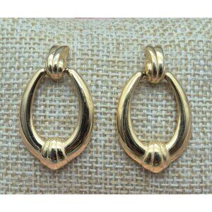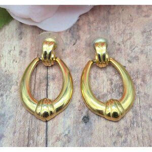 Vintage Sarah Coventry Gold Tone Door Knocker Pierced Hoop Earrings MINT 1.25"