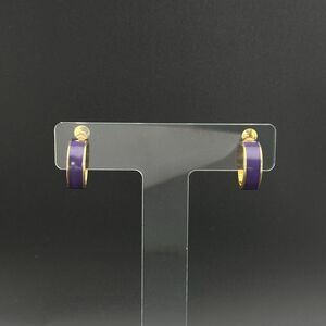 Vintage Sarah Coventry Signed Gold Tone Purple Enamel Hoop Clip-On Earrings.